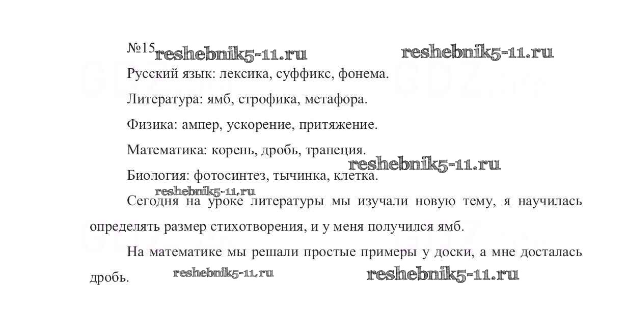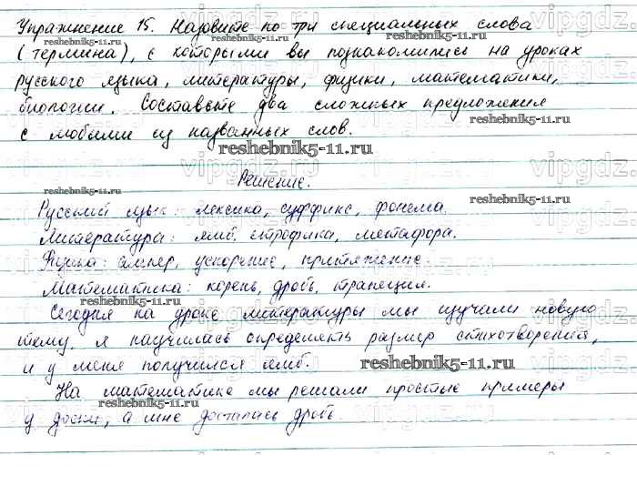 Готовая домашняя работа с ответами по Русскому языку за 7 класс Баранов, Ладыженская, Тростенцова Учебник УМК Просвещение 2015 ФГОС - Упражнения 15