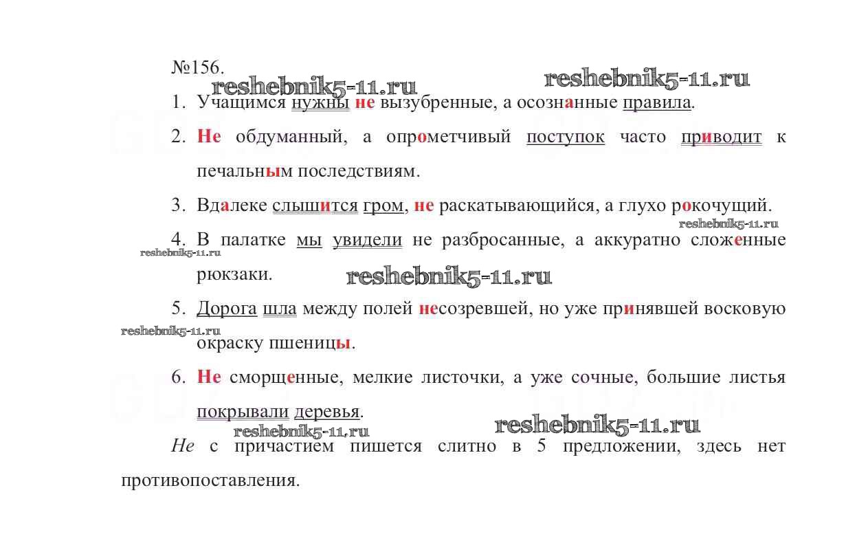 Готовая домашняя работа с ответами по Русскому языку за 7 класс Баранов, Ладыженская, Тростенцова Учебник УМК Просвещение 2015 ФГОС - Упражнения 156