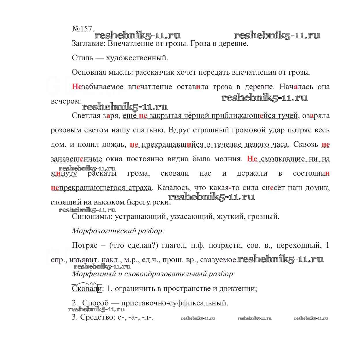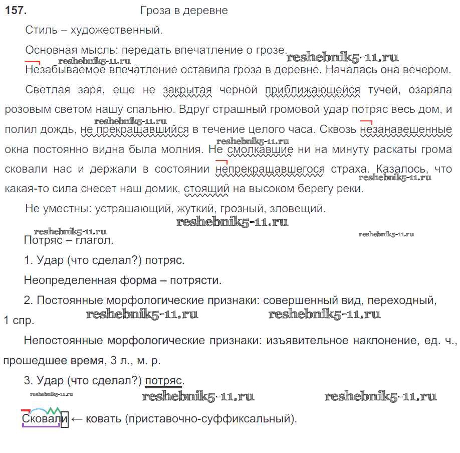 Готовая домашняя работа с ответами по Русскому языку за 7 класс Баранов, Ладыженская, Тростенцова Учебник УМК Просвещение 2015 ФГОС - Упражнения 157