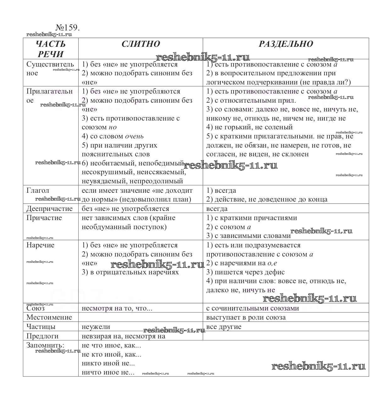 Готовая домашняя работа с ответами по Русскому языку за 7 класс Баранов, Ладыженская, Тростенцова Учебник УМК Просвещение 2015 ФГОС - Упражнения 159