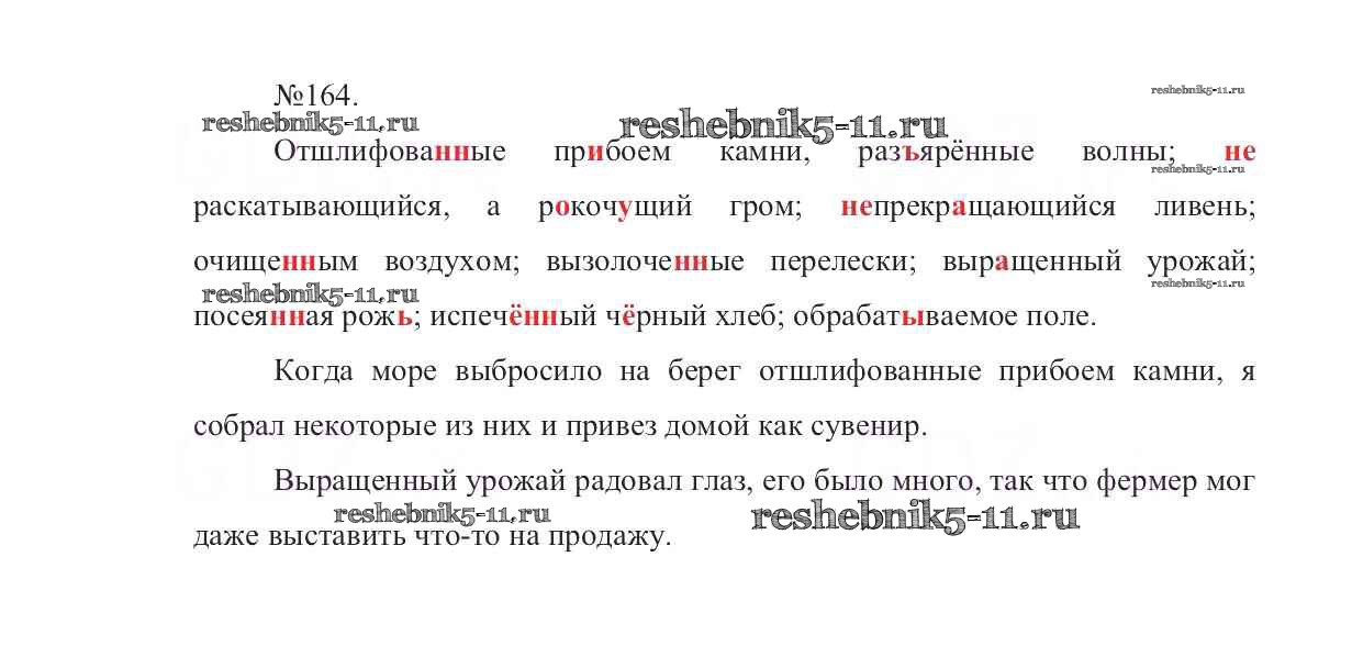Готовая домашняя работа с ответами по Русскому языку за 7 класс Баранов, Ладыженская, Тростенцова Учебник УМК Просвещение 2015 ФГОС - Упражнения 164
