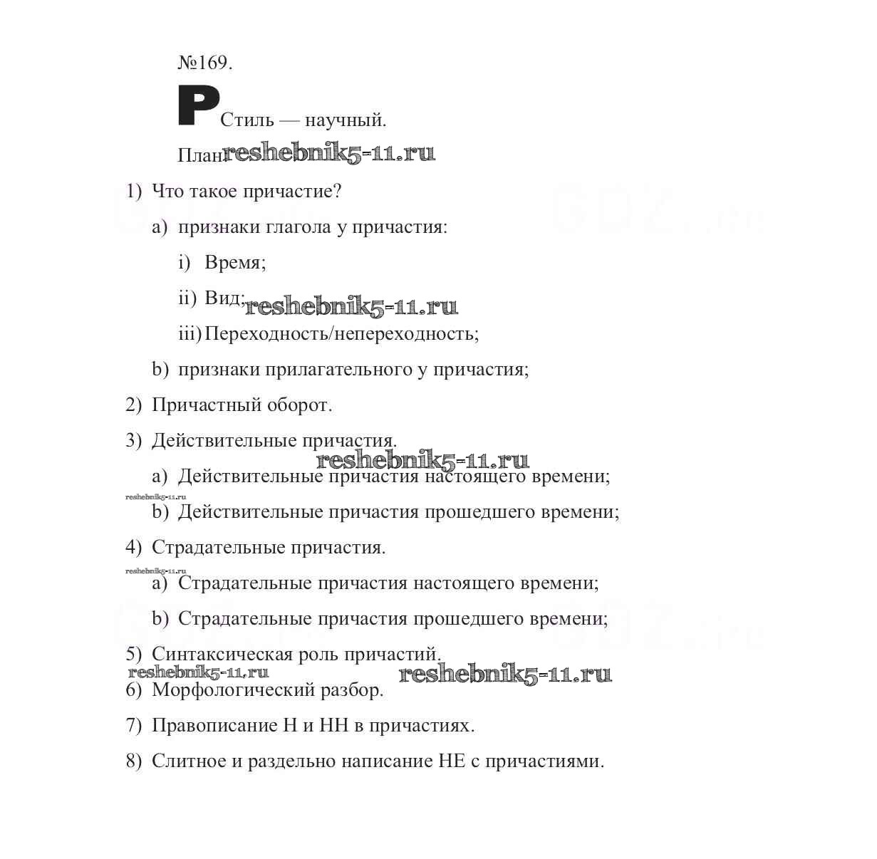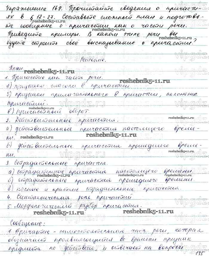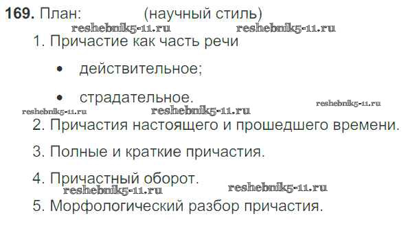 Готовая домашняя работа с ответами по Русскому языку за 7 класс Баранов, Ладыженская, Тростенцова Учебник УМК Просвещение 2015 ФГОС - Упражнения 169