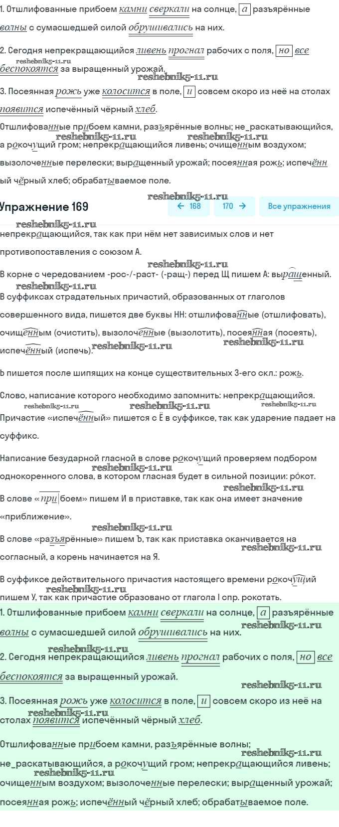 Готовая домашняя работа с ответами по Русскому языку за 7 класс Баранов, Ладыженская, Тростенцова Учебник Просвещение 2015 ФГОС - Упражнения 169