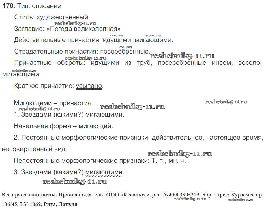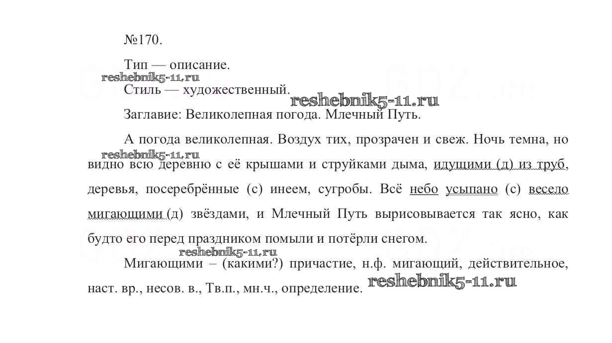 Готовая домашняя работа с ответами по Русскому языку за 7 класс Баранов, Ладыженская, Тростенцова Учебник УМК Просвещение 2015 ФГОС - Упражнения 170