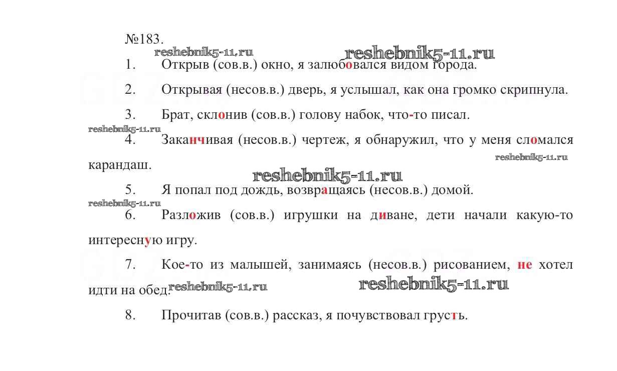 Готовая домашняя работа с ответами по Русскому языку за 7 класс Баранов, Ладыженская, Тростенцова Учебник УМК Просвещение 2015 ФГОС - Упражнения 183