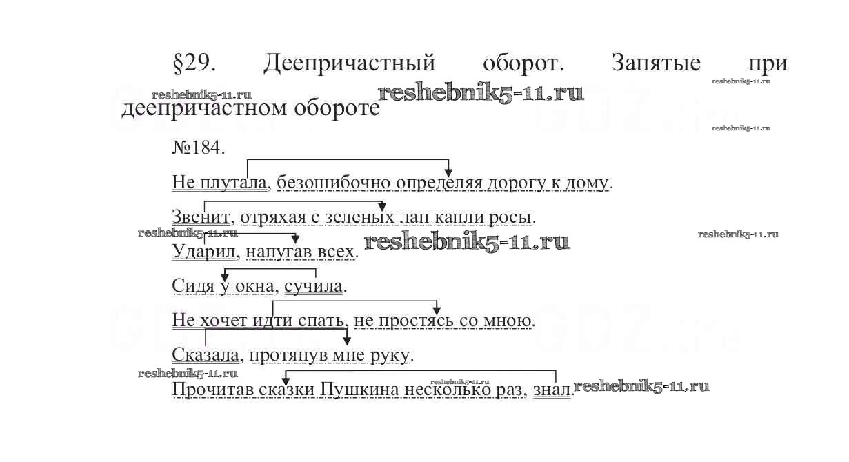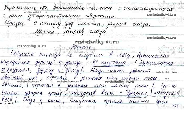 Готовая домашняя работа с ответами по Русскому языку за 7 класс Баранов, Ладыженская, Тростенцова Учебник УМК Просвещение 2015 ФГОС - Упражнения 184