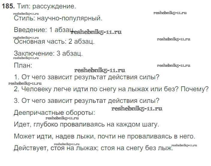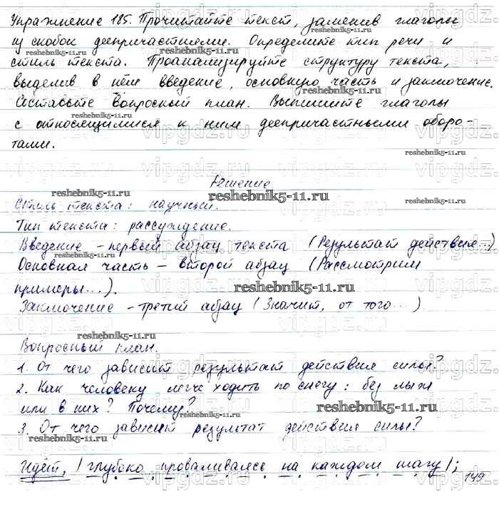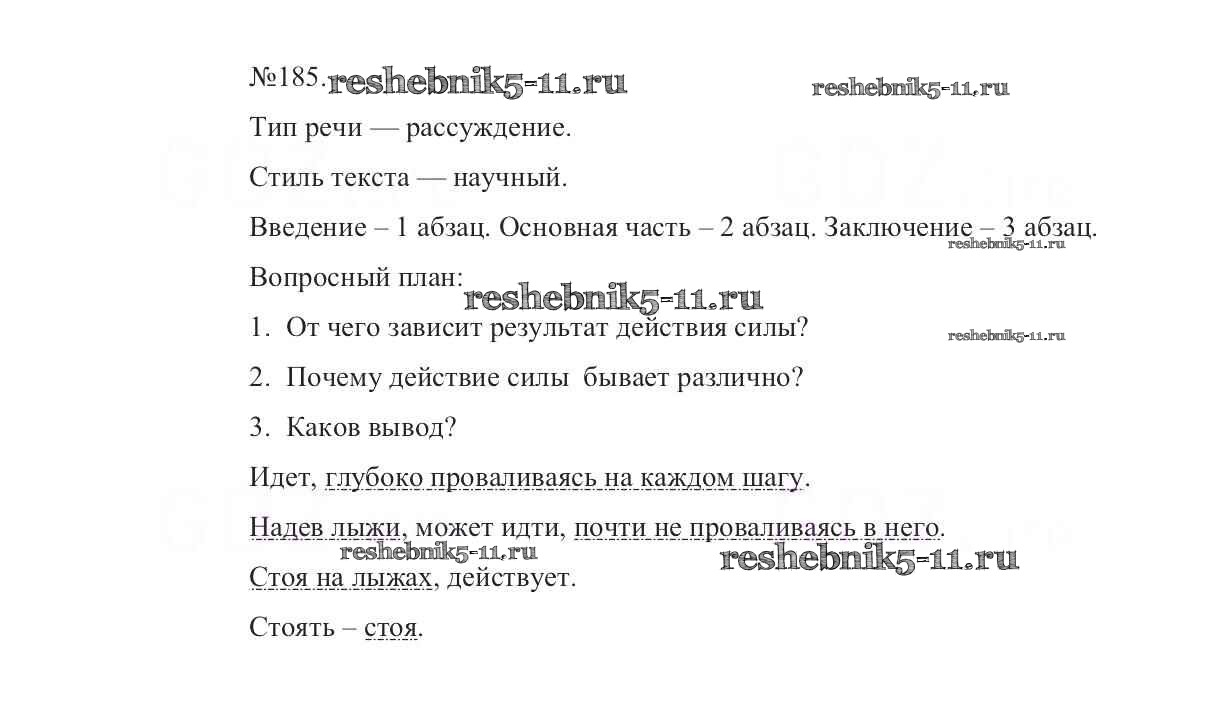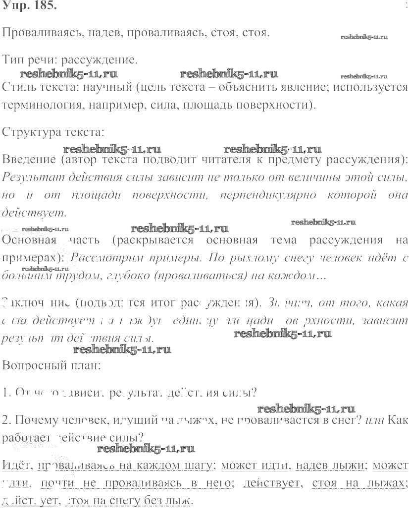 Готовая домашняя работа с ответами по Русскому языку за 7 класс Баранов, Ладыженская, Тростенцова Учебник УМК Просвещение 2015 ФГОС - Упражнения 185