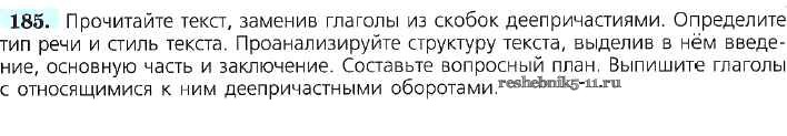 Русский язык за 7 класс Баранов Учебник УМК Просвещение упражнение 185