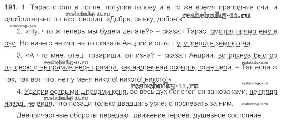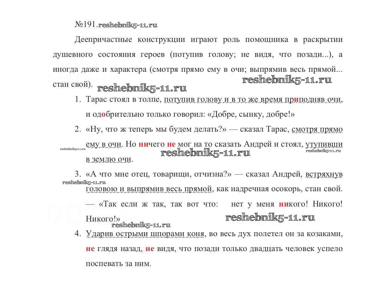 Готовая домашняя работа с ответами по Русскому языку за 7 класс Баранов, Ладыженская, Тростенцова Учебник УМК Просвещение 2015 ФГОС - Упражнения 191