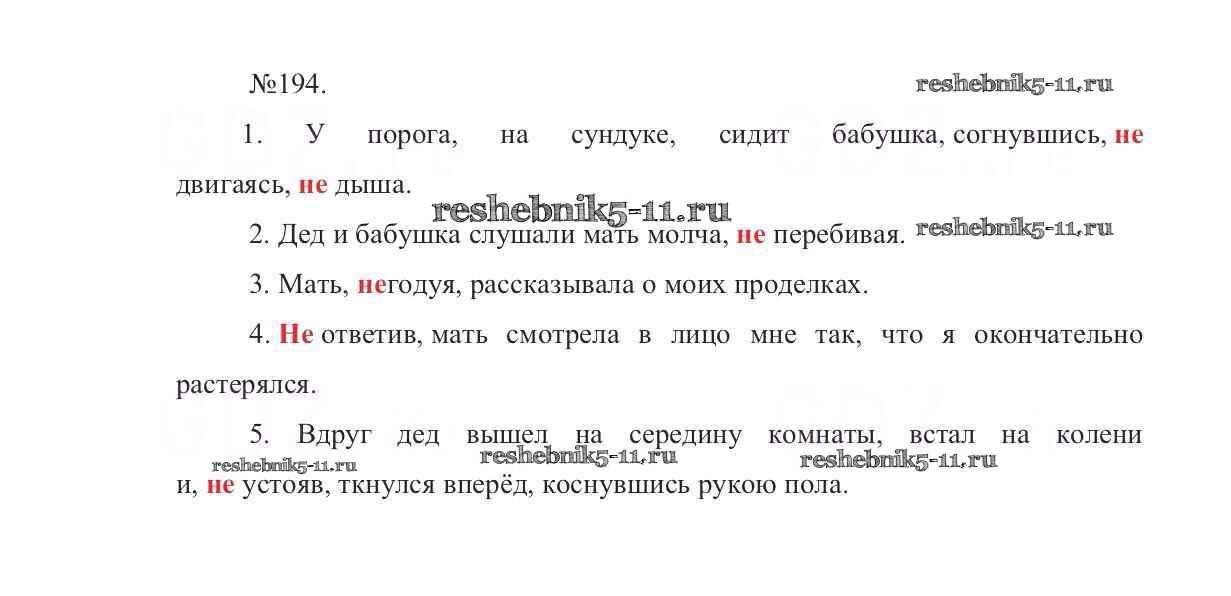 Готовая домашняя работа с ответами по Русскому языку за 7 класс Баранов, Ладыженская, Тростенцова Учебник УМК Просвещение 2015 ФГОС - Упражнения 194