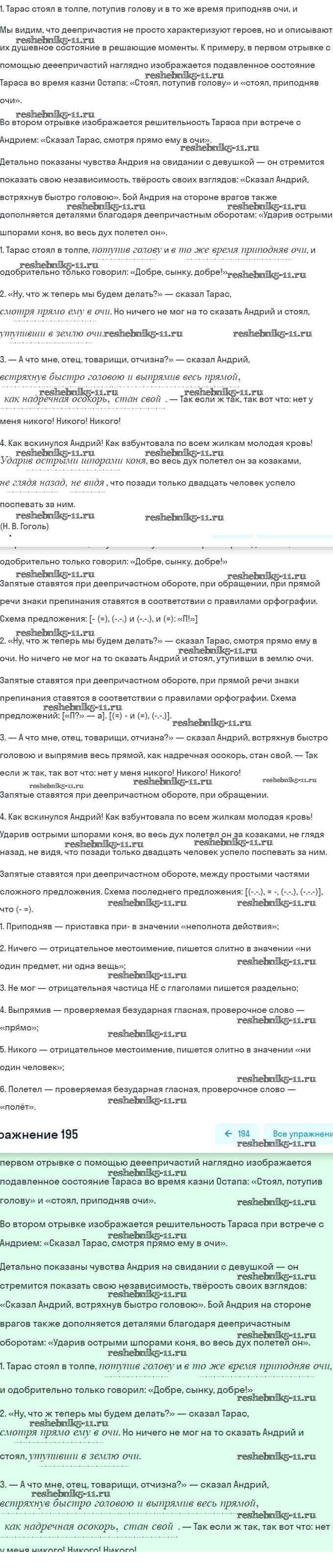 Готовая домашняя работа с ответами по Русскому языку за 7 класс Баранов, Ладыженская, Тростенцова Учебник Просвещение 2015 ФГОС - Упражнения 195