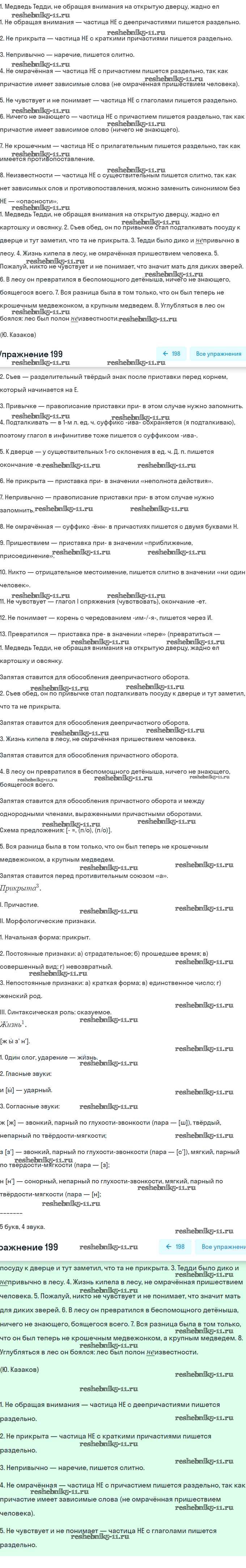 Готовая домашняя работа с ответами по Русскому языку за 7 класс Баранов, Ладыженская, Тростенцова Учебник Просвещение 2015 ФГОС - Упражнения 199
