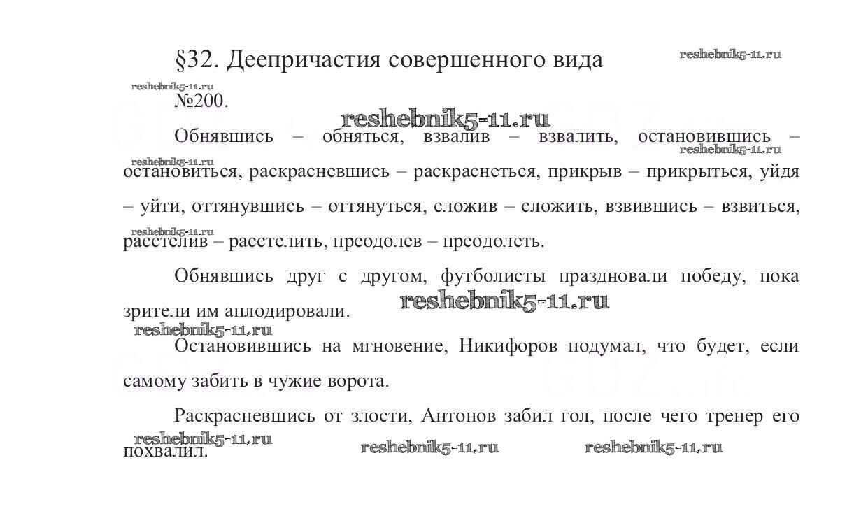 Готовая домашняя работа с ответами по Русскому языку за 7 класс Баранов, Ладыженская, Тростенцова Учебник УМК Просвещение 2015 ФГОС - Упражнения 200