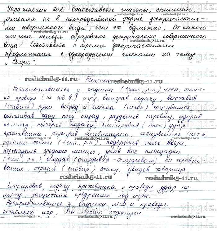 Готовая домашняя работа с ответами по Русскому языку за 7 класс Баранов, Ладыженская, Тростенцова Учебник УМК Просвещение 2015 ФГОС - Упражнения 202