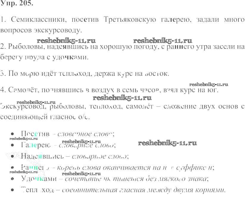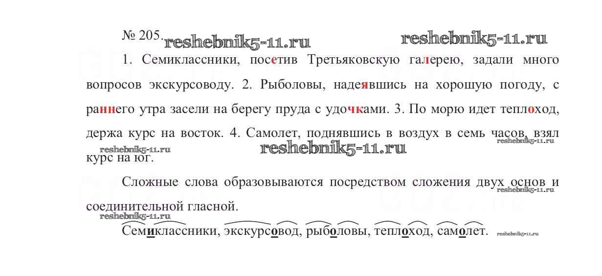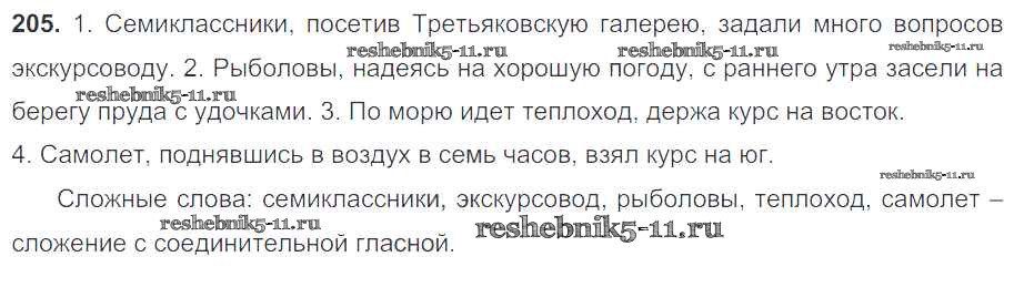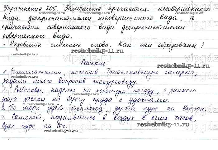 Готовая домашняя работа с ответами по Русскому языку за 7 класс Баранов, Ладыженская, Тростенцова Учебник УМК Просвещение 2015 ФГОС - Упражнения 205
