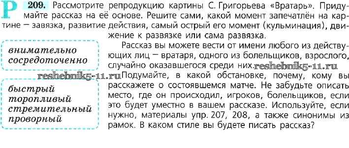 Русский язык за 7 класс Баранов Учебник УМК Просвещение упражнение 209