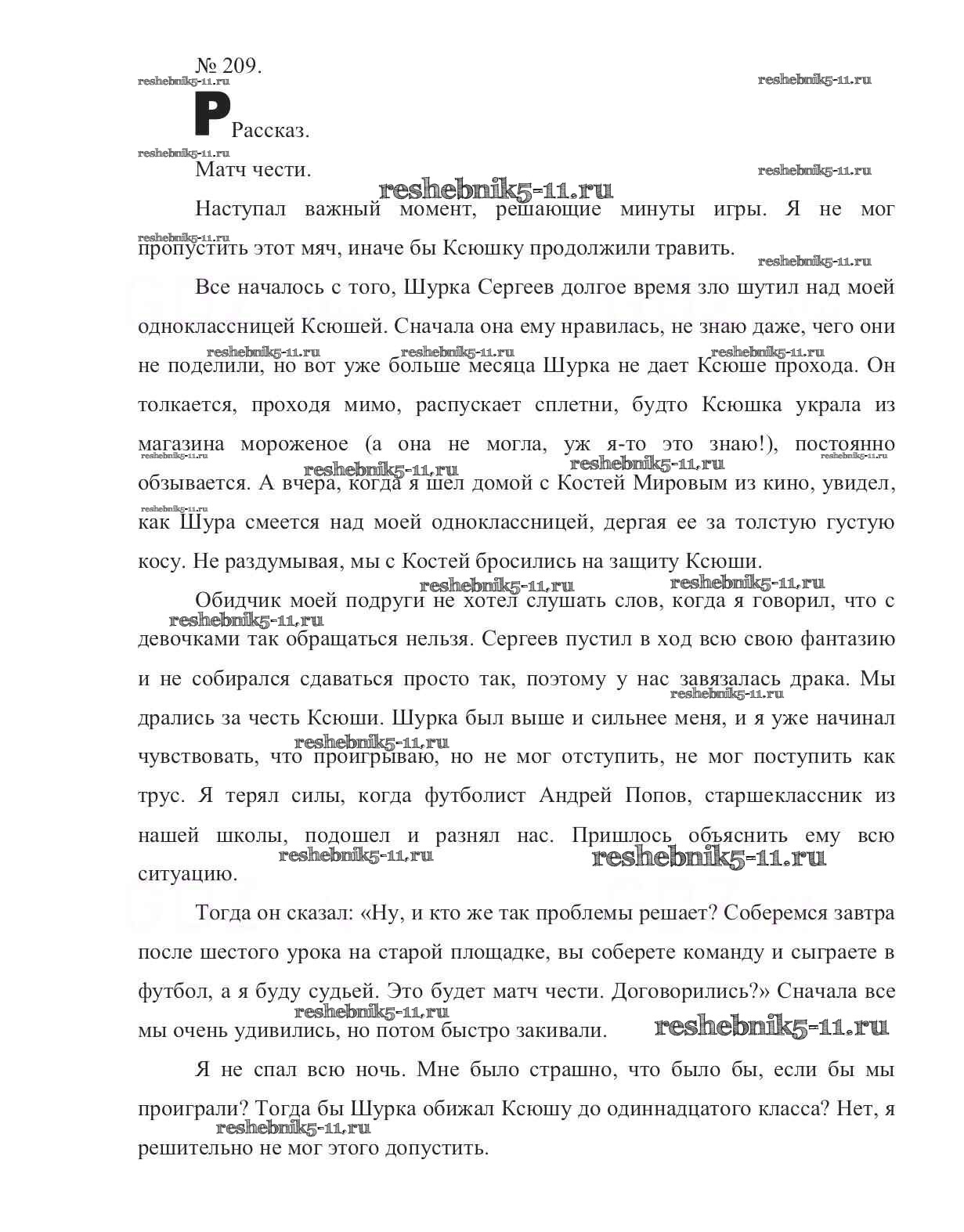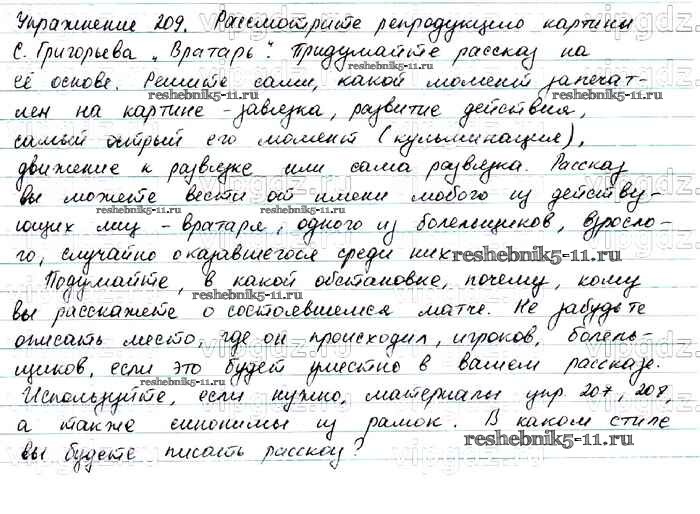 Готовая домашняя работа с ответами по Русскому языку за 7 класс Баранов, Ладыженская, Тростенцова Учебник УМК Просвещение 2015 ФГОС - Упражнения 209