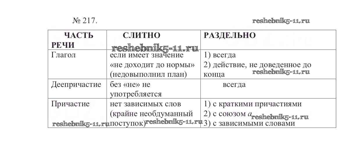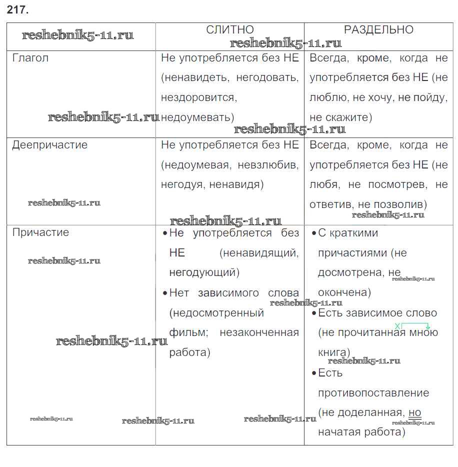 Готовая домашняя работа с ответами по Русскому языку за 7 класс Баранов, Ладыженская, Тростенцова Учебник УМК Просвещение 2015 ФГОС - Упражнения 217