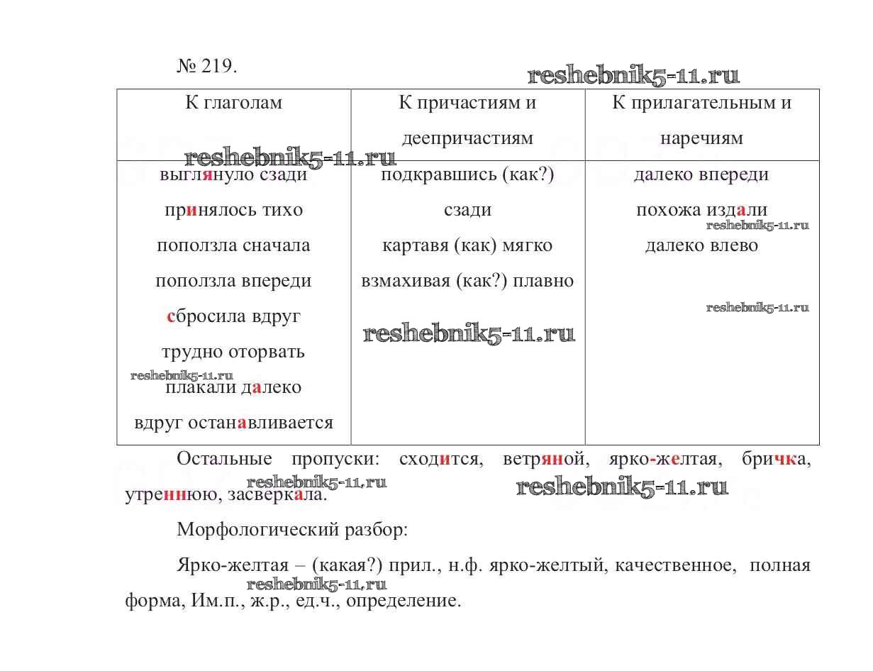 Готовая домашняя работа с ответами по Русскому языку за 7 класс Баранов, Ладыженская, Тростенцова Учебник УМК Просвещение 2015 ФГОС - Упражнения 219