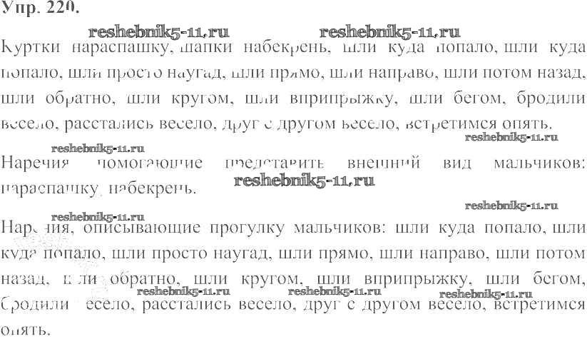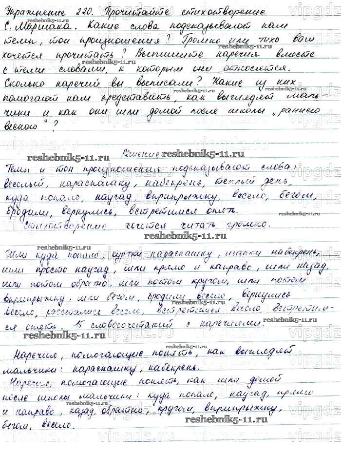 Готовая домашняя работа с ответами по Русскому языку за 7 класс Баранов, Ладыженская, Тростенцова Учебник УМК Просвещение 2015 ФГОС - Упражнения 220