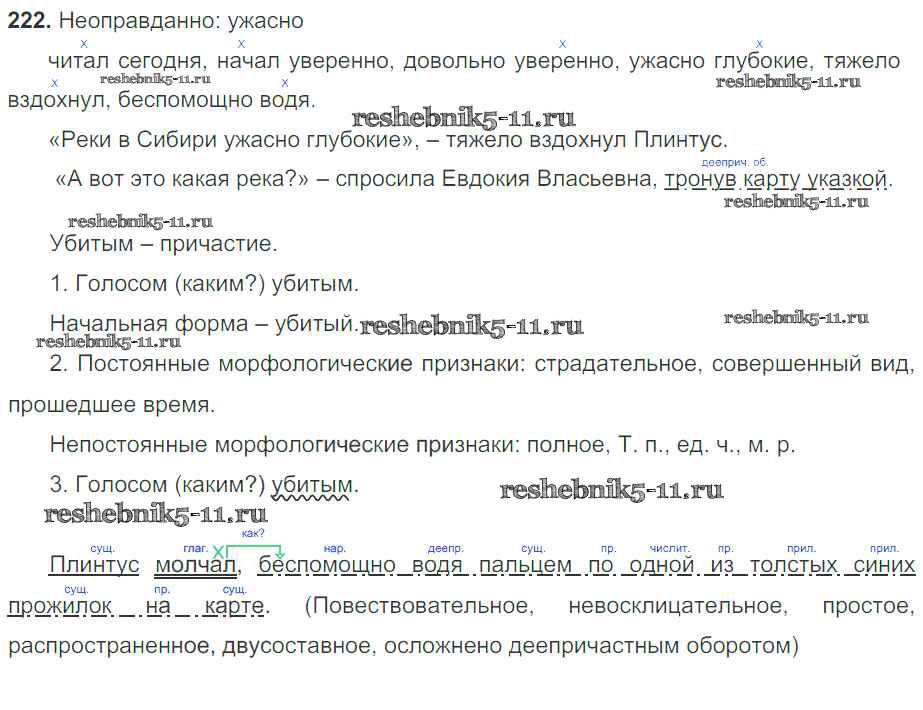 Готовая домашняя работа с ответами по Русскому языку за 7 класс Баранов, Ладыженская, Тростенцова Учебник УМК Просвещение 2015 ФГОС - Упражнения 222