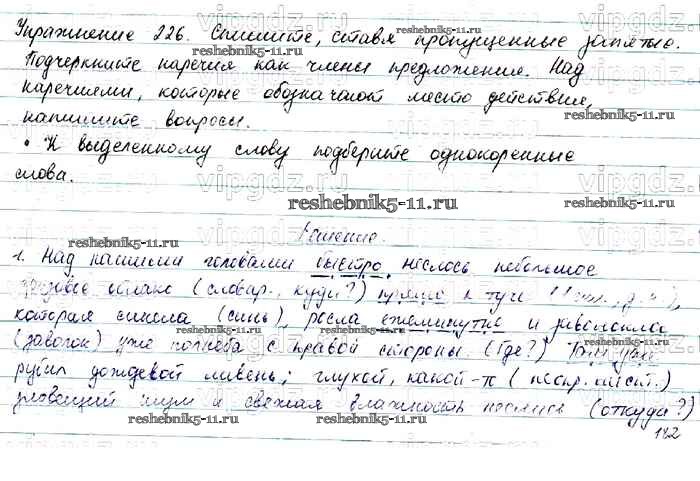 Готовая домашняя работа с ответами по Русскому языку за 7 класс Баранов, Ладыженская, Тростенцова Учебник УМК Просвещение 2015 ФГОС - Упражнения 226