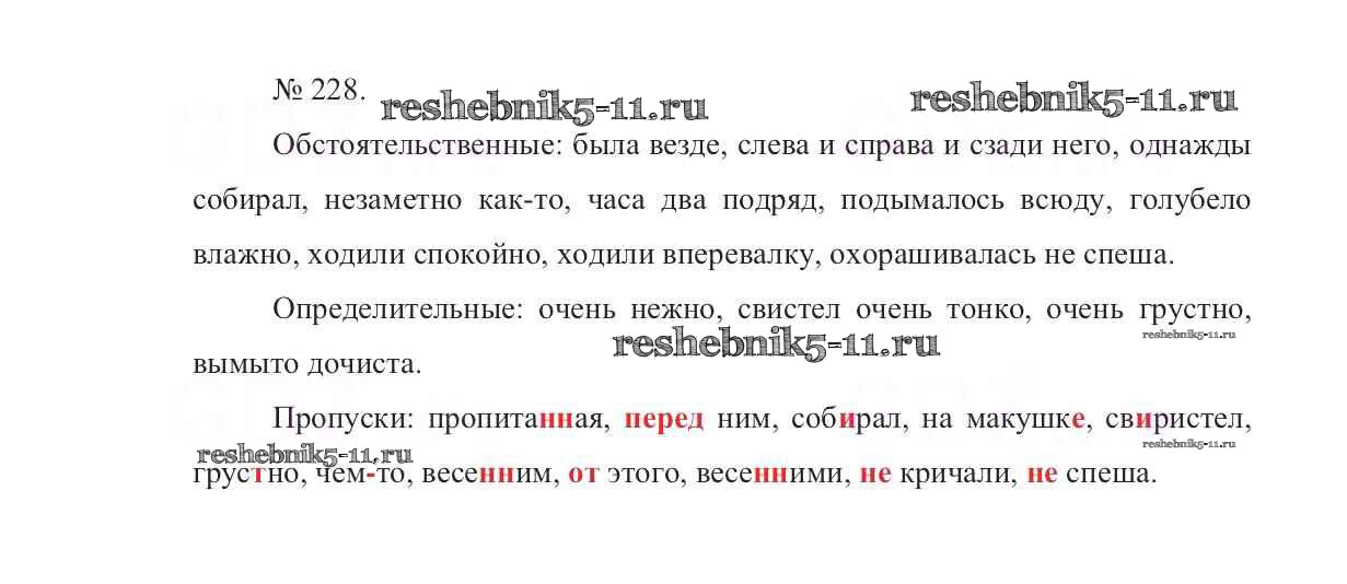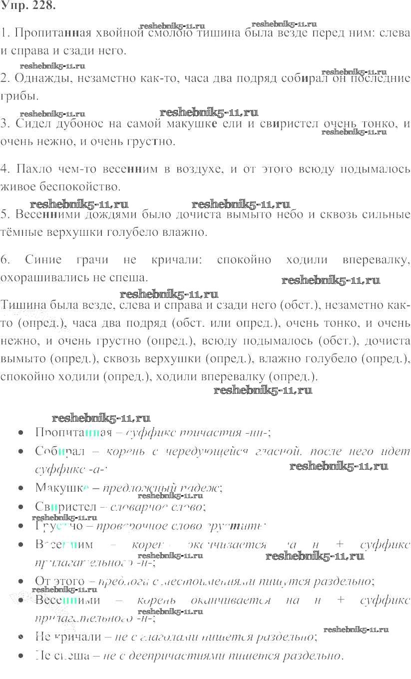 Готовая домашняя работа с ответами по Русскому языку за 7 класс Баранов, Ладыженская, Тростенцова Учебник УМК Просвещение 2015 ФГОС - Упражнения 228