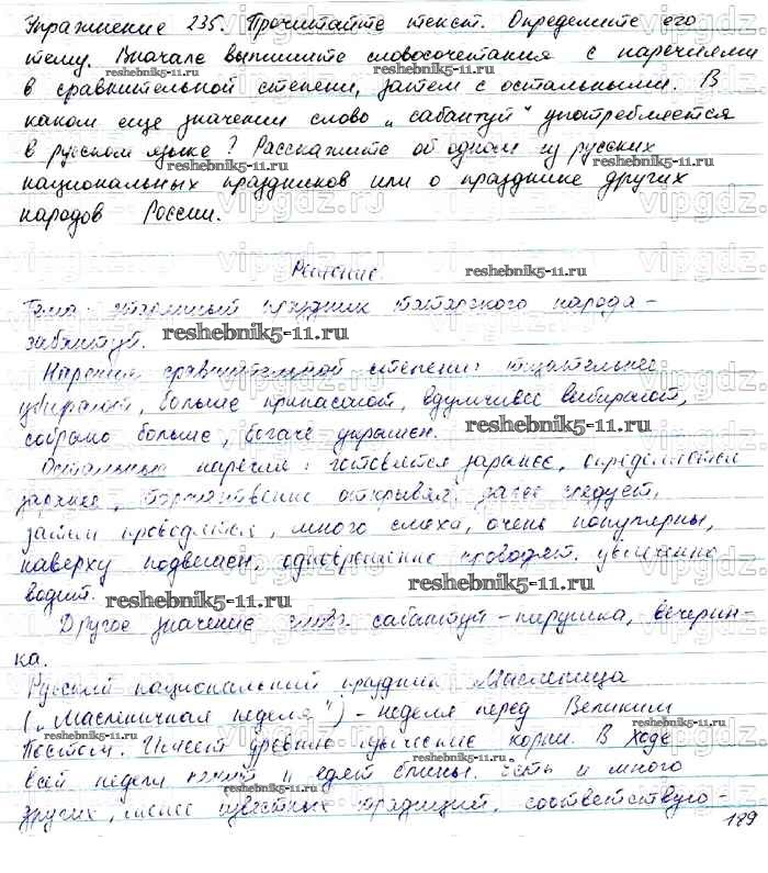 Готовая домашняя работа с ответами по Русскому языку за 7 класс Баранов, Ладыженская, Тростенцова Учебник УМК Просвещение 2015 ФГОС - Упражнения 235
