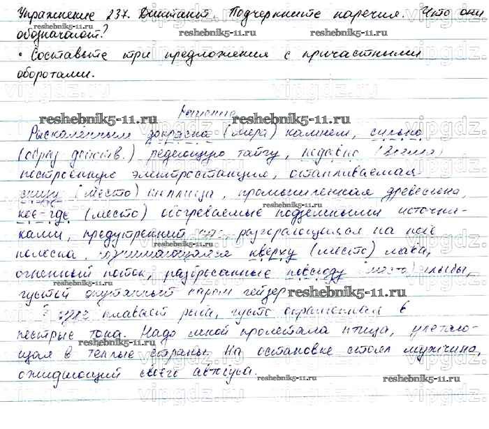 Готовая домашняя работа с ответами по Русскому языку за 7 класс Баранов, Ладыженская, Тростенцова Учебник УМК Просвещение 2015 ФГОС - Упражнения 237