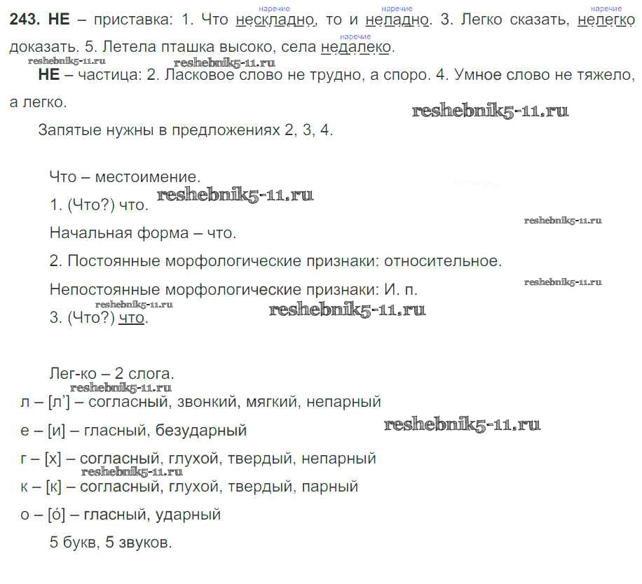 Готовая домашняя работа с ответами по Русскому языку за 7 класс Баранов, Ладыженская, Тростенцова Учебник УМК Просвещение 2015 ФГОС - Упражнения 243