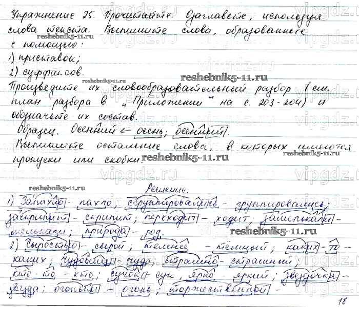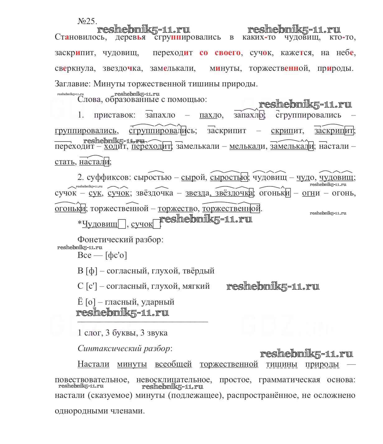 Готовая домашняя работа с ответами по Русскому языку за 7 класс Баранов, Ладыженская, Тростенцова Учебник УМК Просвещение 2015 ФГОС - Упражнения 25