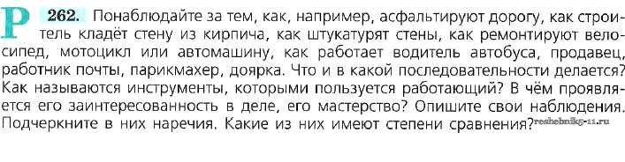 Русский язык за 7 класс Баранов Учебник УМК Просвещение упражнение 262