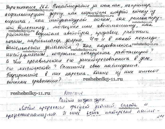 Готовая домашняя работа с ответами по Русскому языку за 7 класс Баранов, Ладыженская, Тростенцова Учебник УМК Просвещение 2015 ФГОС - Упражнения 262