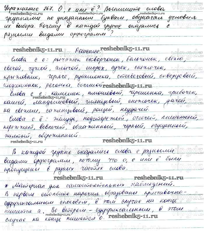 Готовая домашняя работа с ответами по Русскому языку за 7 класс Баранов, Ладыженская, Тростенцова Учебник УМК Просвещение 2015 ФГОС - Упражнения 267