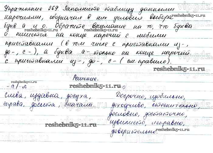 Готовая домашняя работа с ответами по Русскому языку за 7 класс Баранов, Ладыженская, Тростенцова Учебник УМК Просвещение 2015 ФГОС - Упражнения 269
