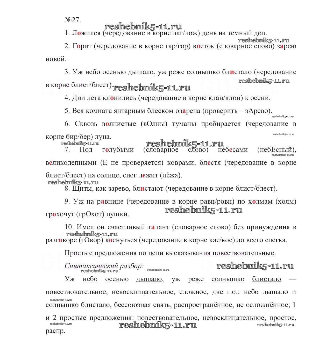 Готовая домашняя работа с ответами по Русскому языку за 7 класс Баранов, Ладыженская, Тростенцова Учебник УМК Просвещение 2015 ФГОС - Упражнения 27
