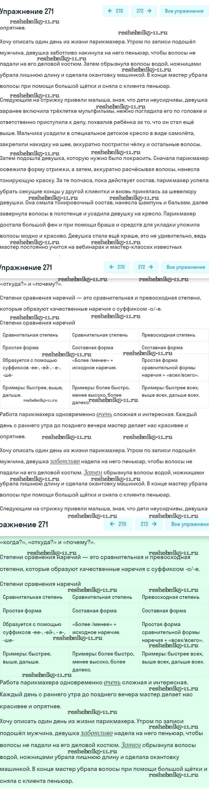Готовая домашняя работа с ответами по Русскому языку за 7 класс Баранов, Ладыженская, Тростенцова Учебник Просвещение 2015 ФГОС - Упражнения 271