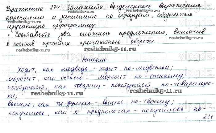 Готовая домашняя работа с ответами по Русскому языку за 7 класс Баранов, Ладыженская, Тростенцова Учебник УМК Просвещение 2015 ФГОС - Упражнения 274