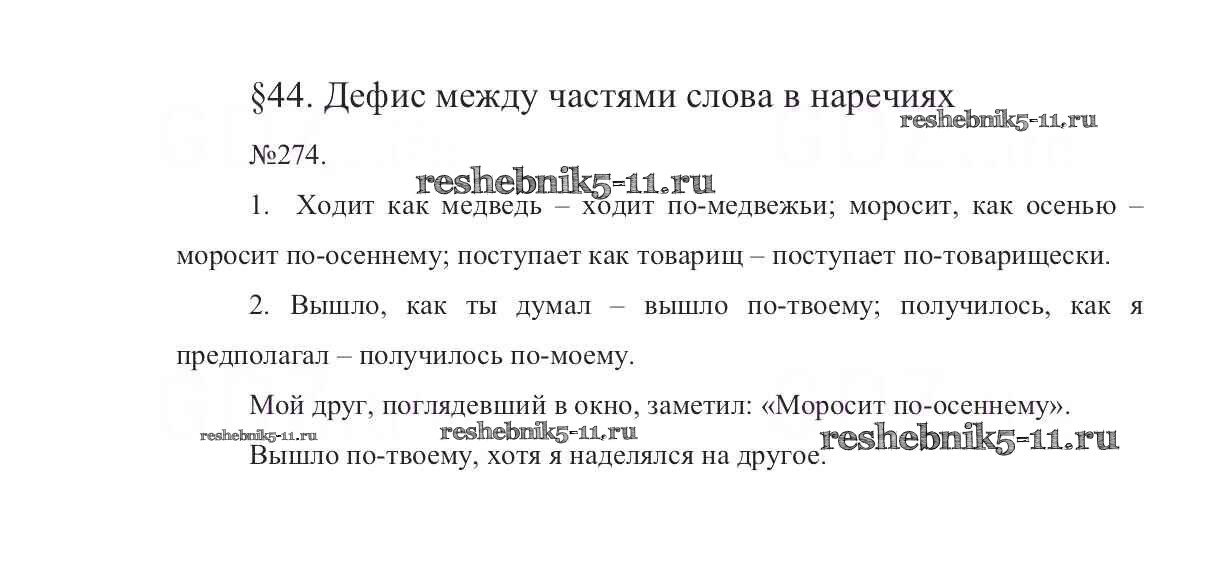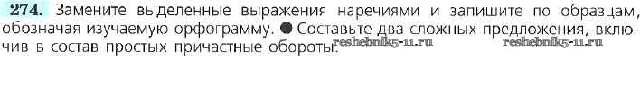 Русский язык за 7 класс Баранов Учебник УМК Просвещение упражнение 274