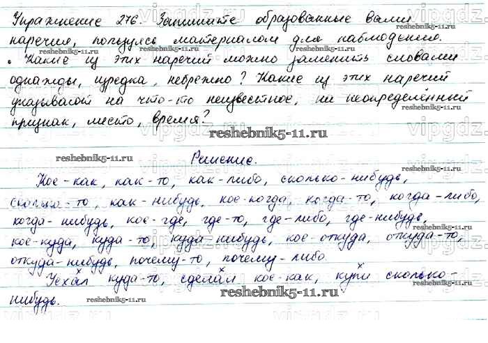 Готовая домашняя работа с ответами по Русскому языку за 7 класс Баранов, Ладыженская, Тростенцова Учебник УМК Просвещение 2015 ФГОС - Упражнения 276