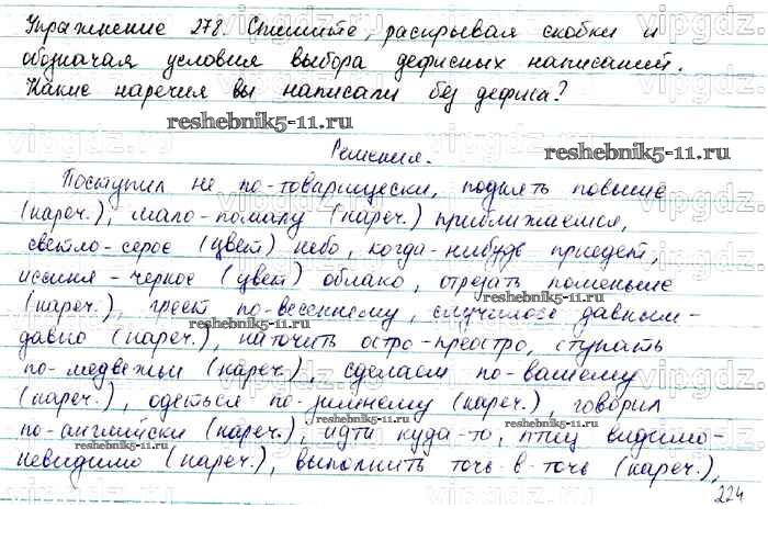 Готовая домашняя работа с ответами по Русскому языку за 7 класс Баранов, Ладыженская, Тростенцова Учебник УМК Просвещение 2015 ФГОС - Упражнения 278