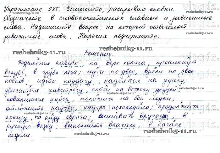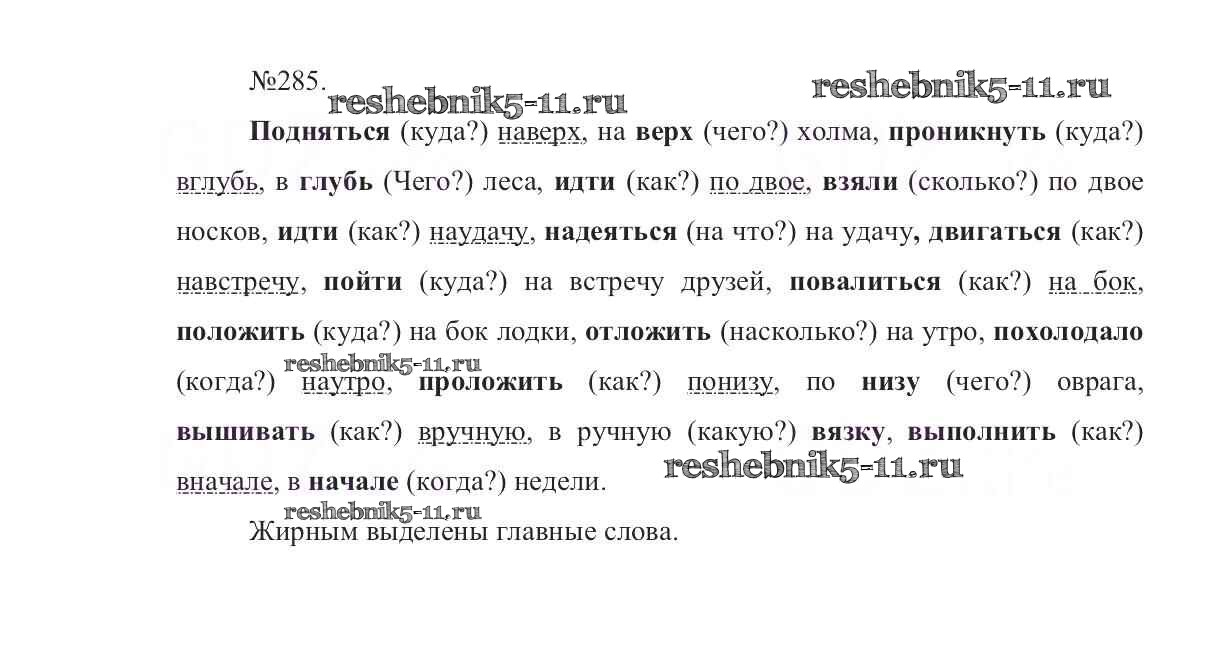 Готовая домашняя работа с ответами по Русскому языку за 7 класс Баранов, Ладыженская, Тростенцова Учебник УМК Просвещение 2015 ФГОС - Упражнения 285