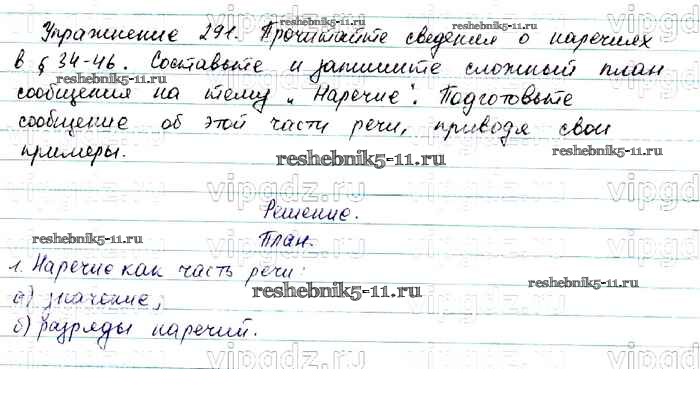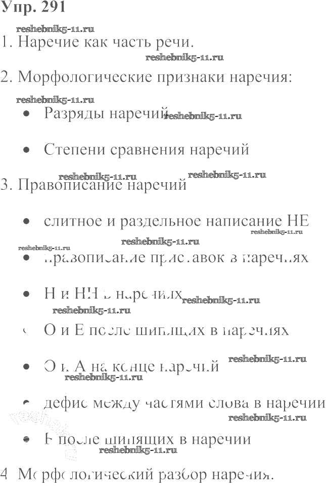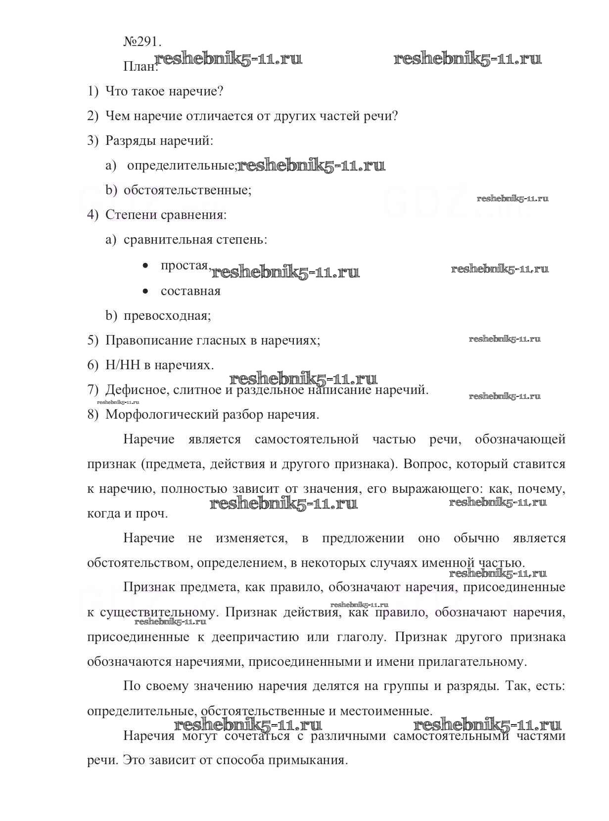 Готовая домашняя работа с ответами по Русскому языку за 7 класс Баранов, Ладыженская, Тростенцова Учебник УМК Просвещение 2015 ФГОС - Упражнения 291