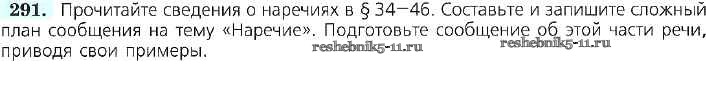 Русский язык за 7 класс Баранов Учебник УМК Просвещение упражнение 291