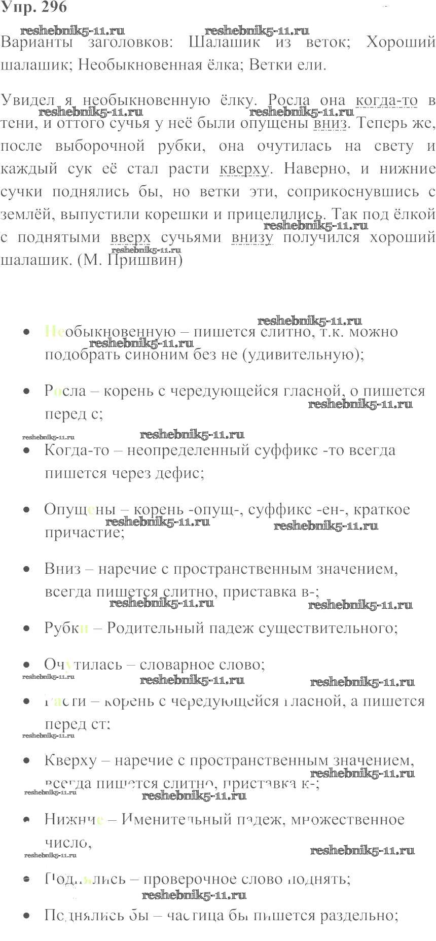 Готовая домашняя работа с ответами по Русскому языку за 7 класс Баранов, Ладыженская, Тростенцова Учебник УМК Просвещение 2015 ФГОС - Упражнения 296