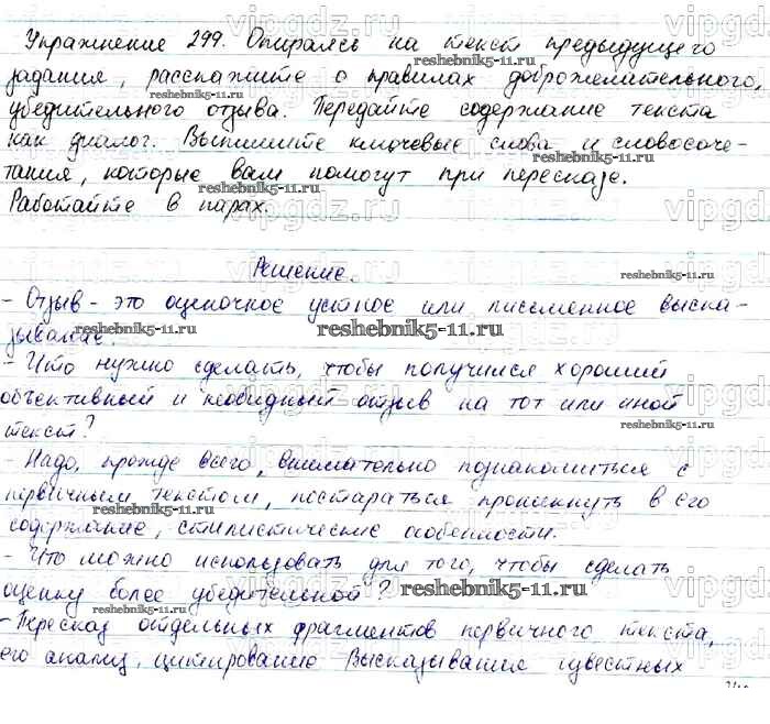 Готовая домашняя работа с ответами по Русскому языку за 7 класс Баранов, Ладыженская, Тростенцова Учебник УМК Просвещение 2015 ФГОС - Упражнения 299