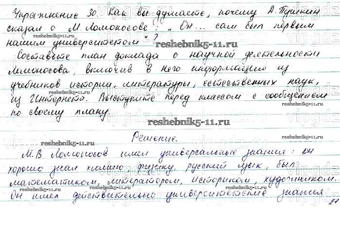 Готовая домашняя работа с ответами по Русскому языку за 7 класс Баранов, Ладыженская, Тростенцова Учебник УМК Просвещение 2015 ФГОС - Упражнения 30