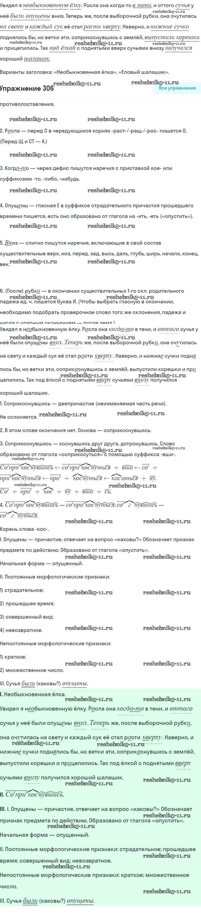 Готовая домашняя работа с ответами по Русскому языку за 7 класс Баранов, Ладыженская, Тростенцова Учебник Просвещение 2015 ФГОС - Упражнения 306