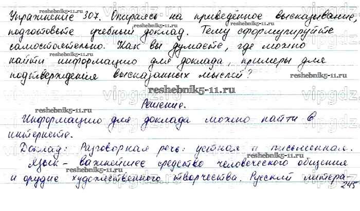 Готовая домашняя работа с ответами по Русскому языку за 7 класс Баранов, Ладыженская, Тростенцова Учебник УМК Просвещение 2015 ФГОС - Упражнения 307