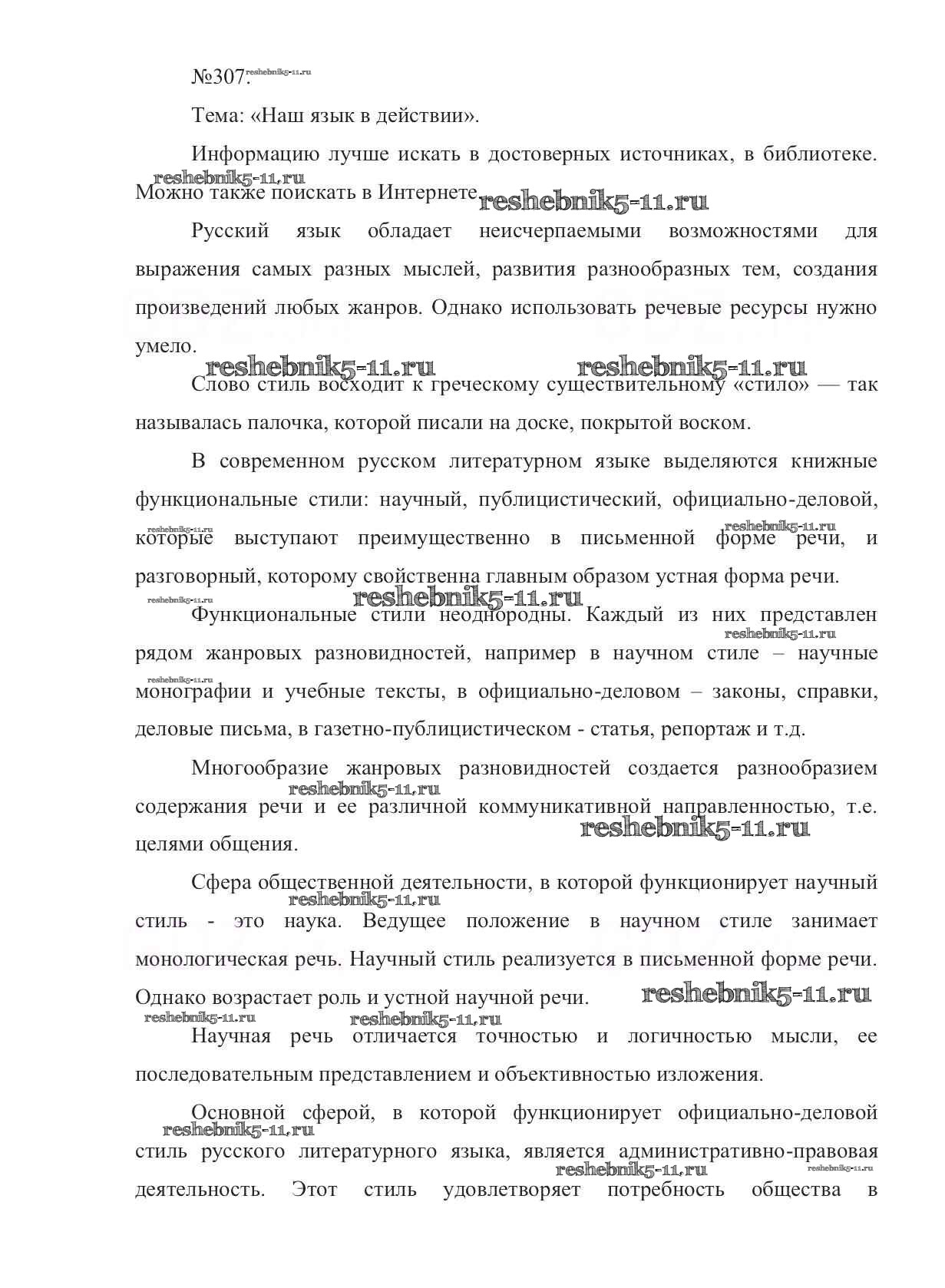 Русский язык за 7 класс Баранов Учебник УМК Просвещение упражнение 307